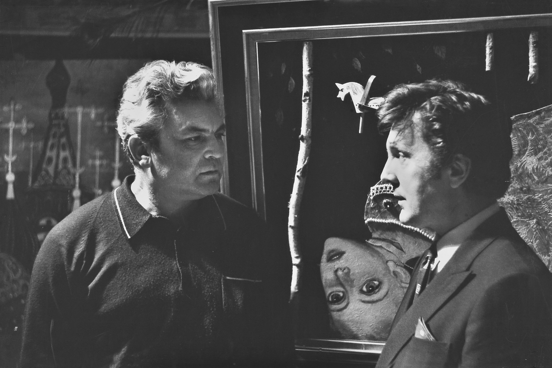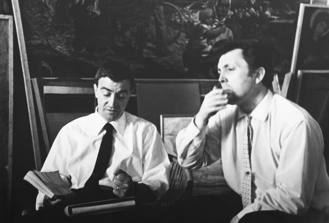 И.С. Глазунов с режиссером С.Ф. Бондарчуком в мастерской художника. Москва