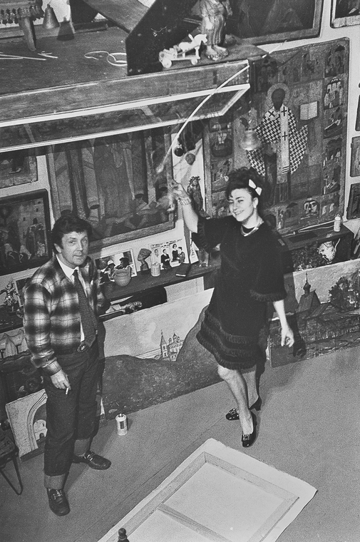 И.С. Глазунов и Г.Л. Брежнева в мастерской художника. Москва