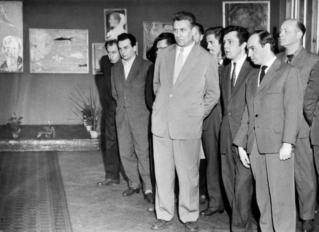 Премьер-министр Дании Енс Отто Краг на выставке Ильи Глазунова в Копенгагене. Дания