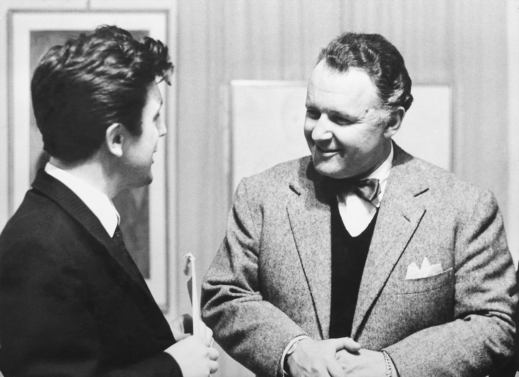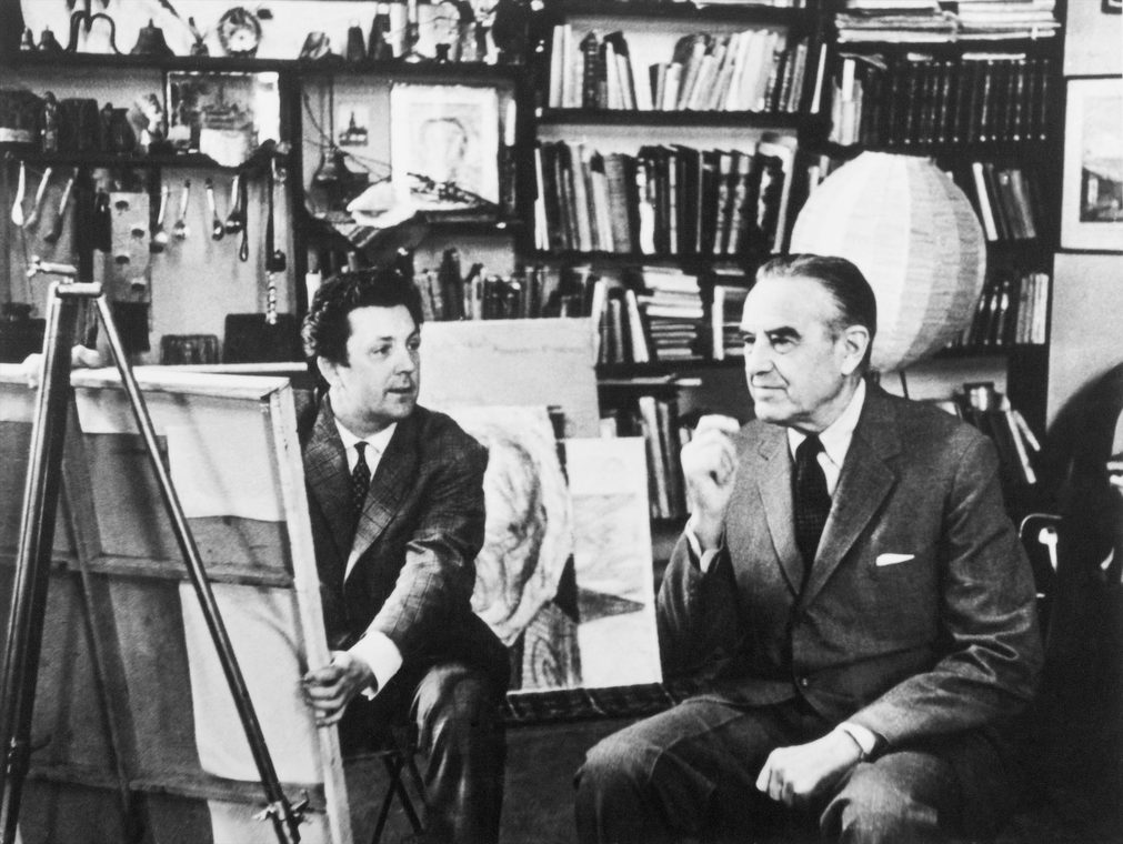 Главный сценограф Ла Скала Н.А. Бенуа обсуждает свои театральные эскизы с Ильей Глазуновым. Милан. Италия