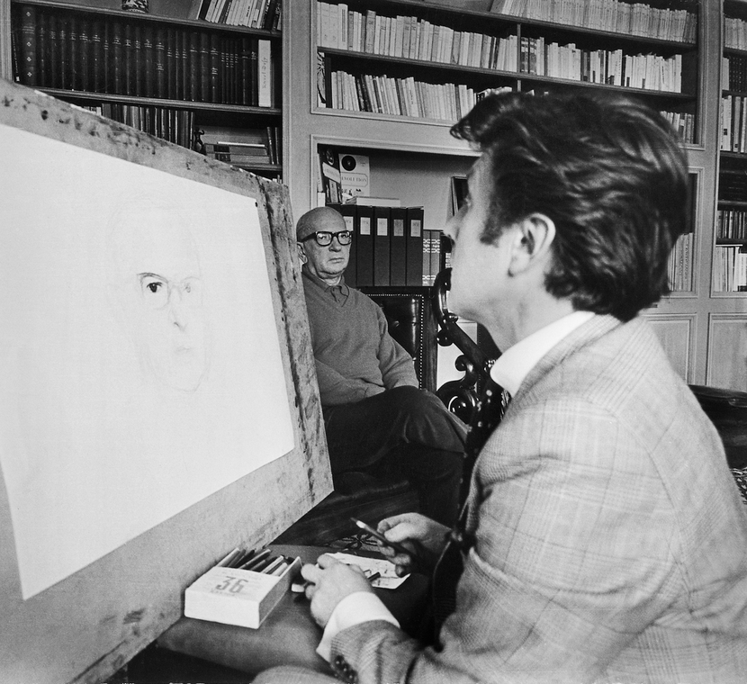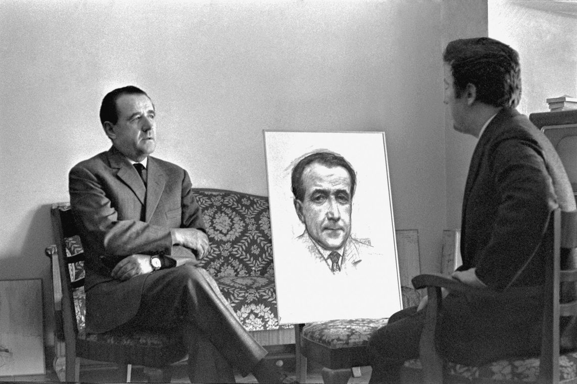 Илья Глазунов за работой над портретом члена Кабинета министров Франции Эдгара Фора. Париж