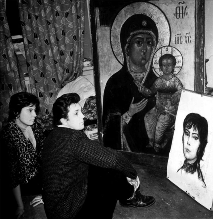 Илья Глазунов с женой за реставрацией иконы. Москва