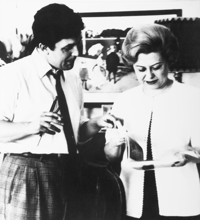Илья Глазунов и итальянская актриса Клаудиа Кардинале после окончания работы над ее портретом. Москва