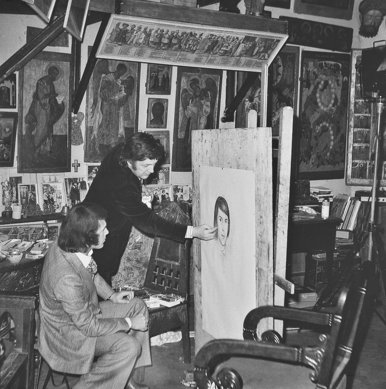 Илья Глазунов работает над портретом Джины Лоллобриджиды. Рим. Италия