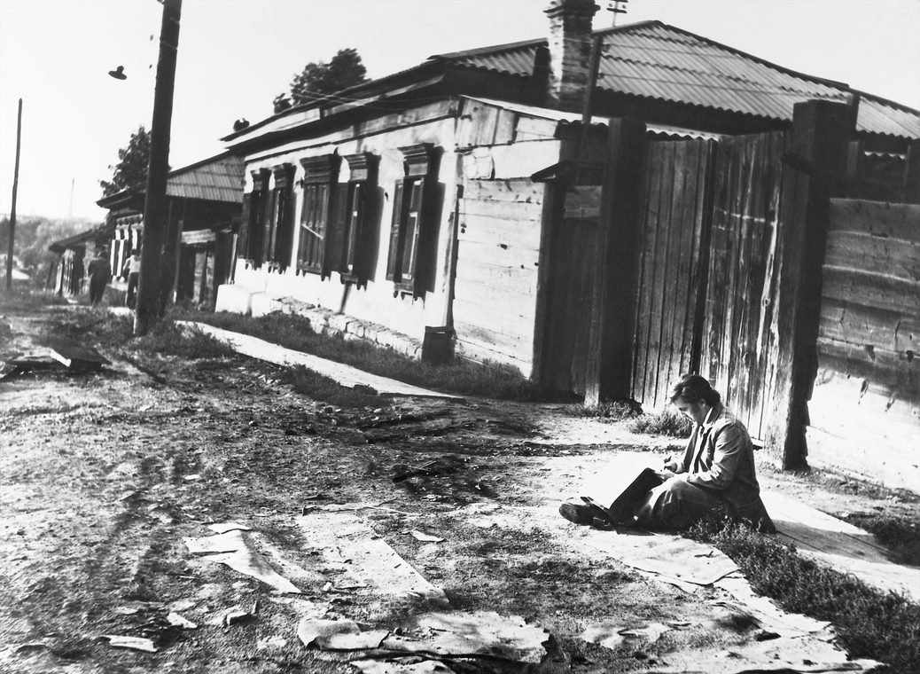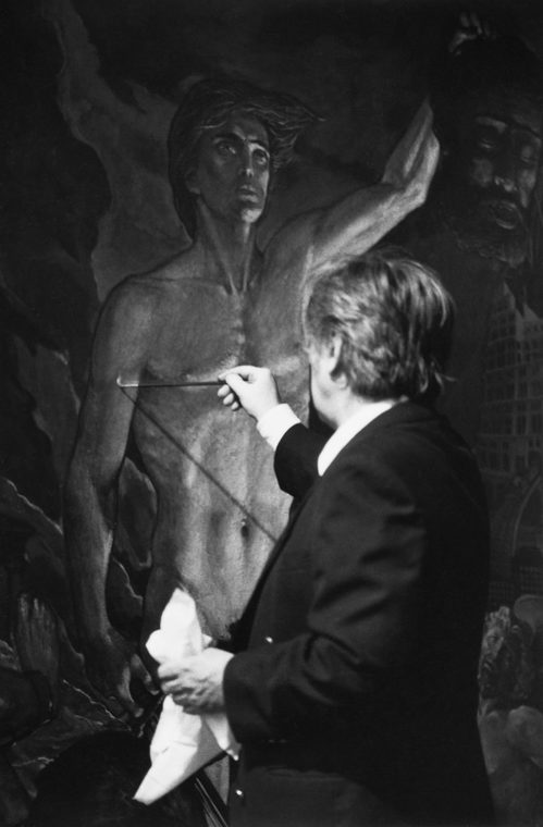 Нина Виноградова-Бенуа за работой над оформлением оперы Н.А. Римского-Корсакова "Сказание о невидимом граде Китеже и деве Февронии" в Большом театре.