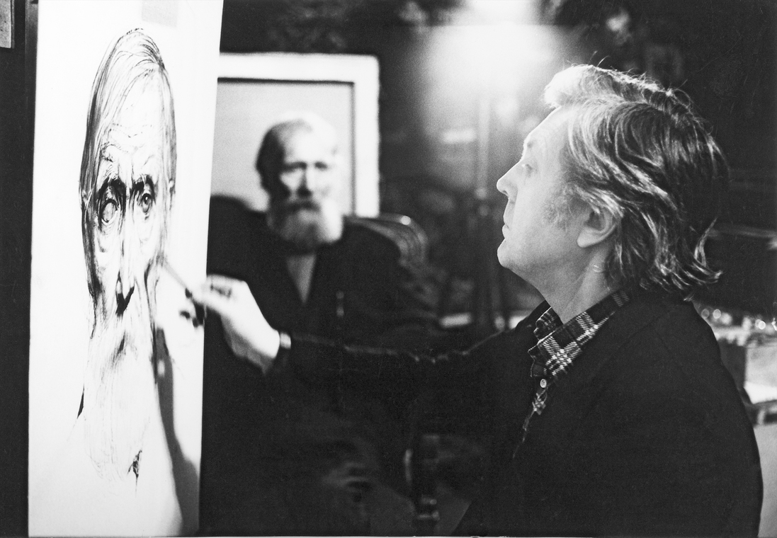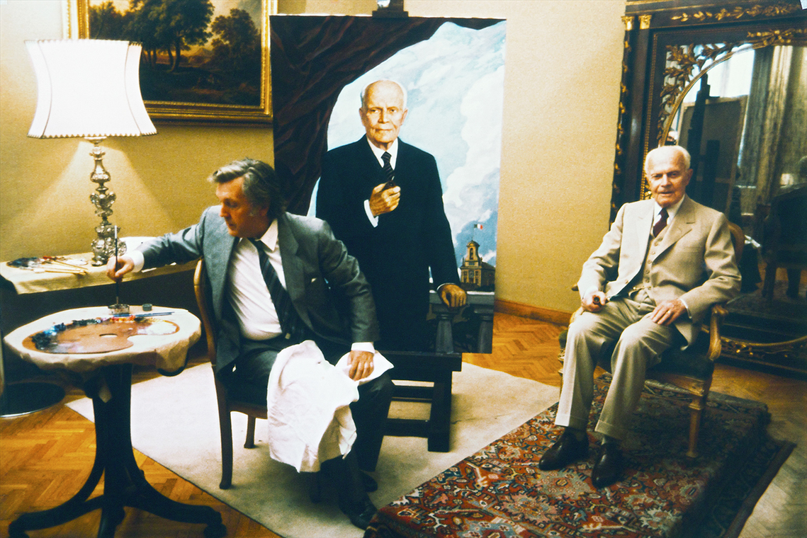 Президент Италии Алессандро Пертини позирует И.С. Глазунову. Дворец Квиринале