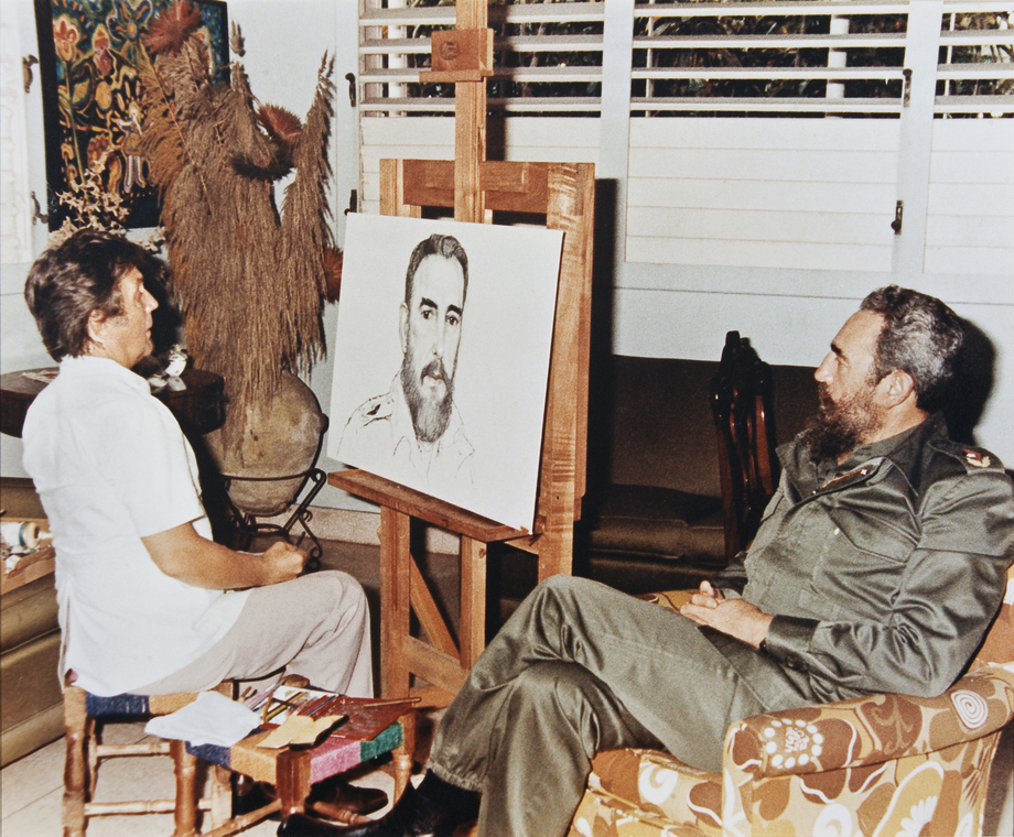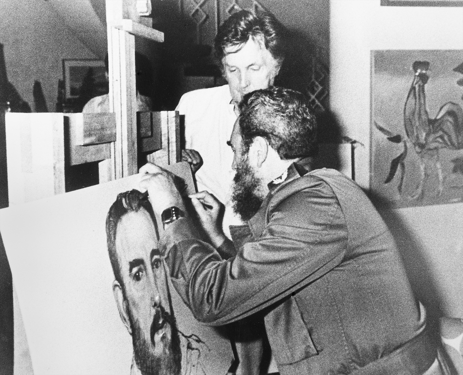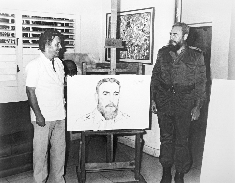 Илья Глазунов и Фидель Кастро у написанного портрета. Гавана