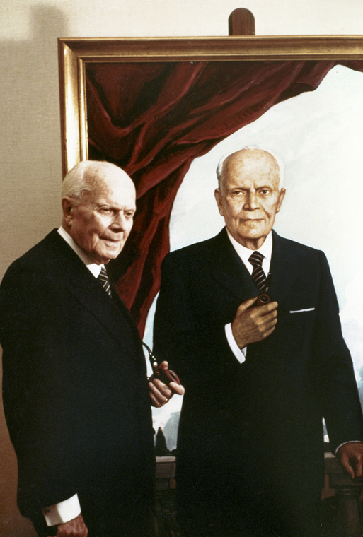 Президент Италии Алессандро Пертини у написанного портрета. Рим