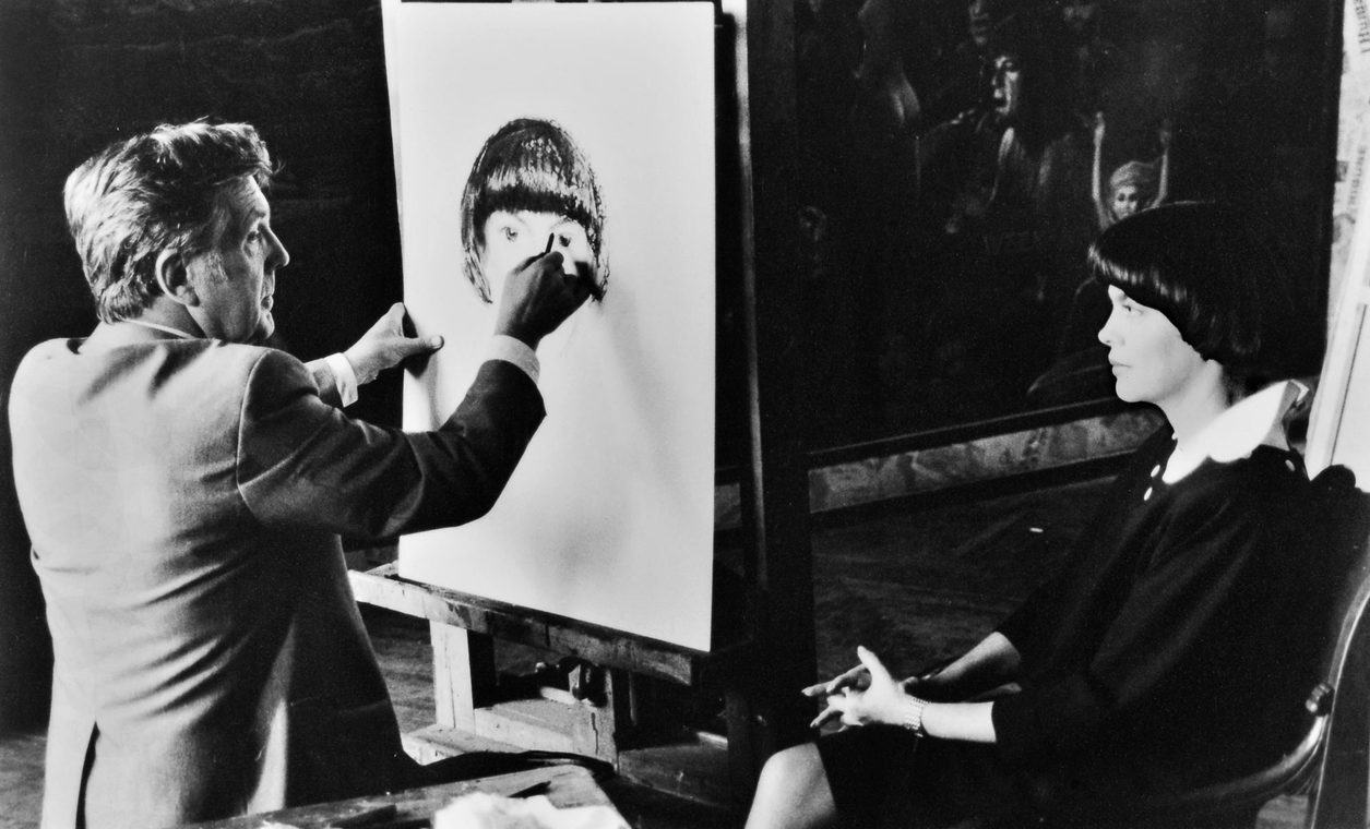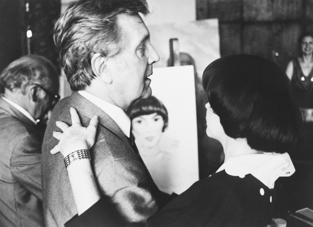 Илья Глазунов и французская певица Мирей Матье около ее портрета. Москва