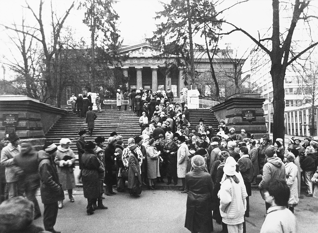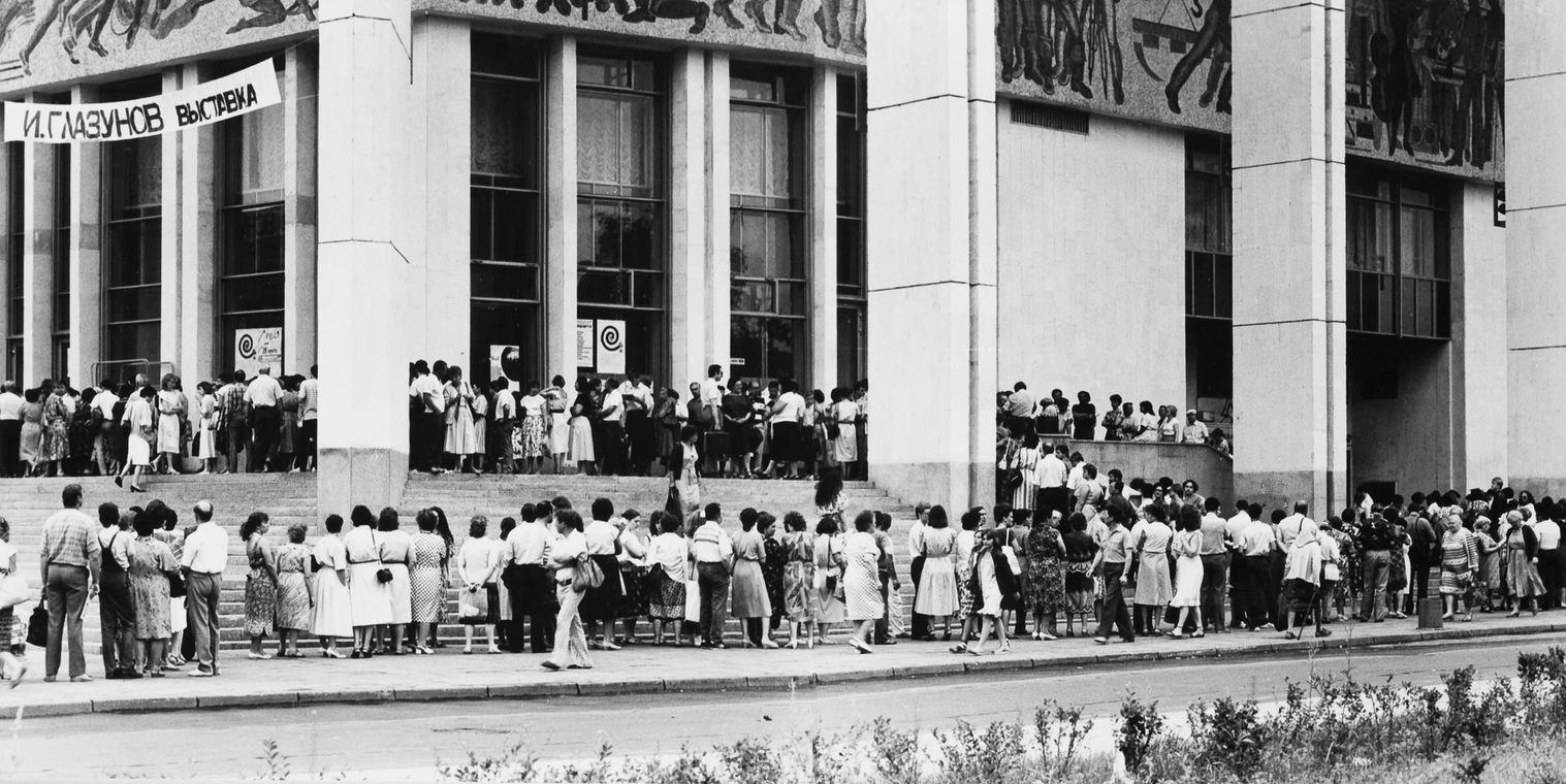 Очередь на выставку Ильи Глазунова во дворце молодежи. Москва