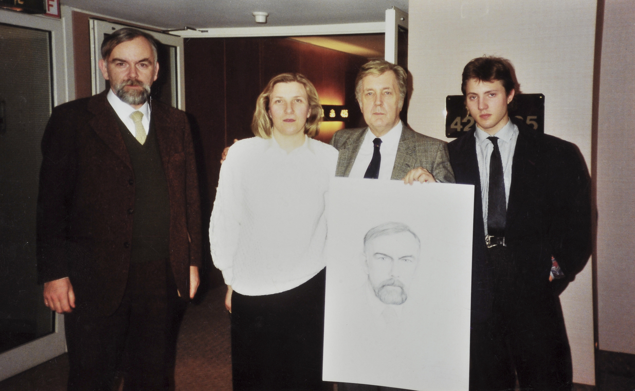 Супруга федерального канцлера ФРГ Рут Брандт, Нина Виноградова-Бенуа, Илья Глазунов на выставке художника.