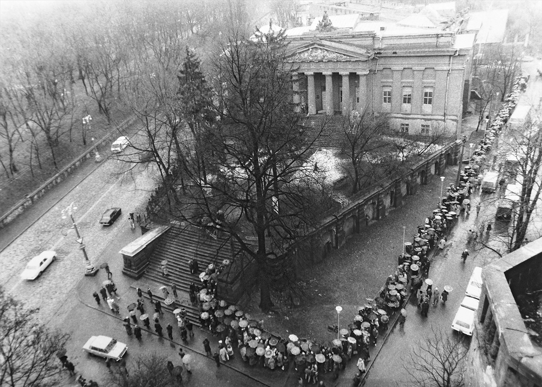 Очередь на выставку Ильи Глазунова в Киеве, открытую в Музее украинского искусства