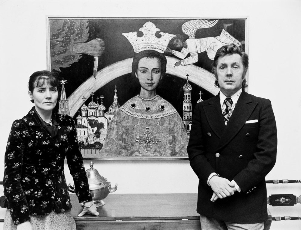 Илья Глазунов с женой Н.А. Виноградовой-Бенуа на выставке в западном Берлине