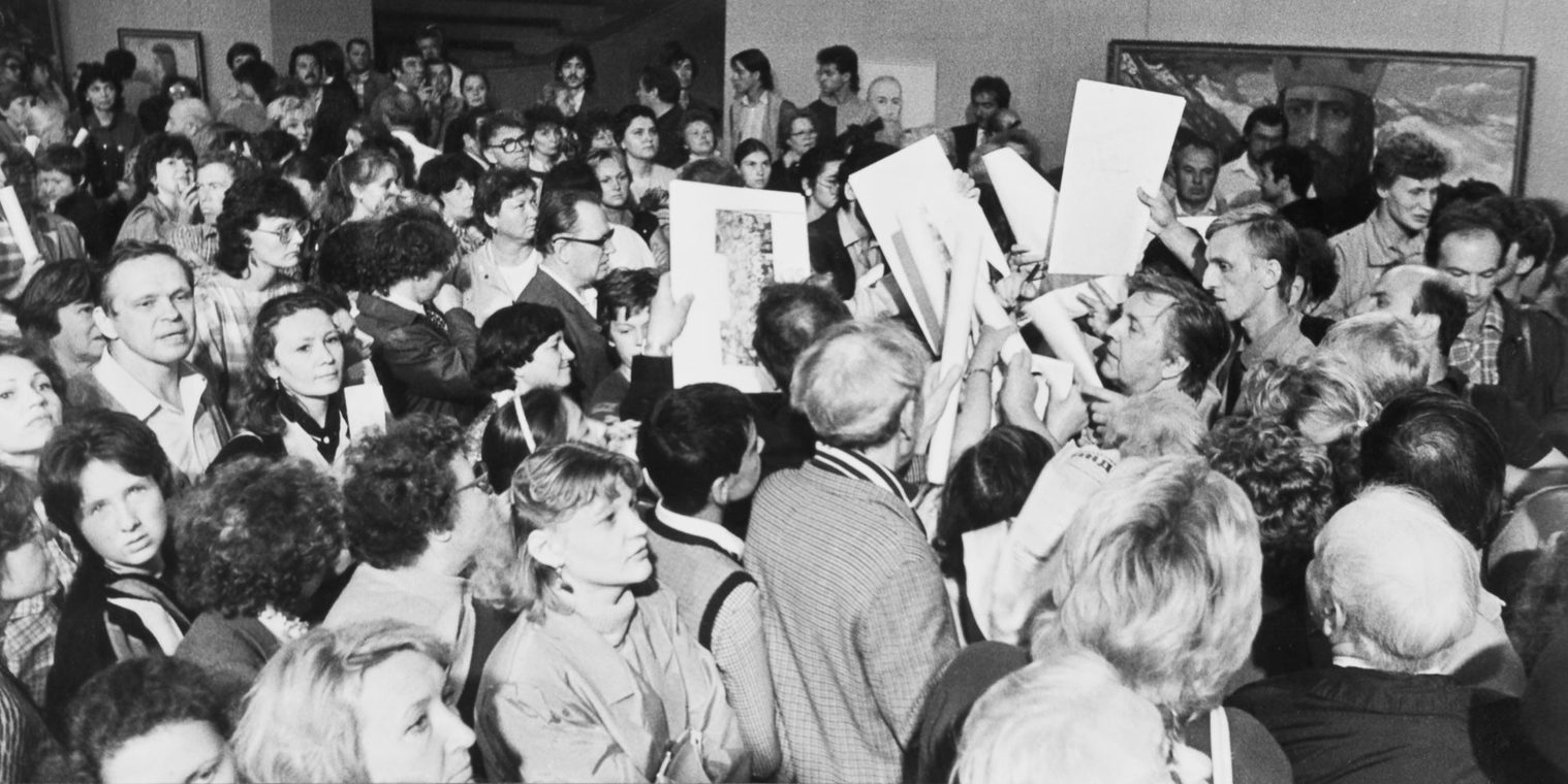 Зрители на выставке Ильи Глазунова во Дворце молодежи. Москва