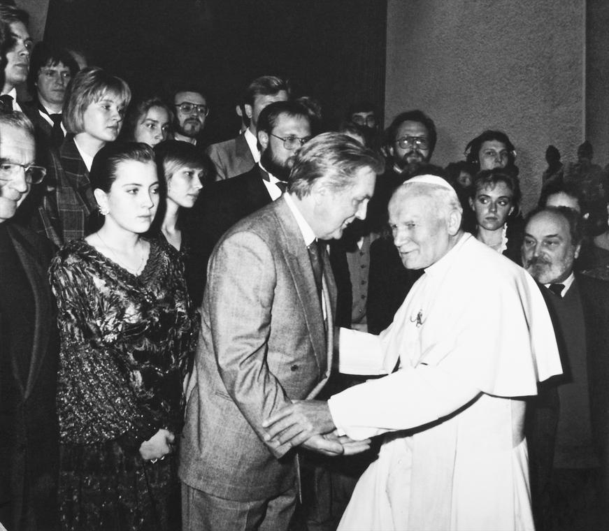 Илья Глазунов с группой студентов созданной им Российской Академии живописи, ваяния и зодчества был принят в Ватикане папой Римским Иоанном-Павлом II