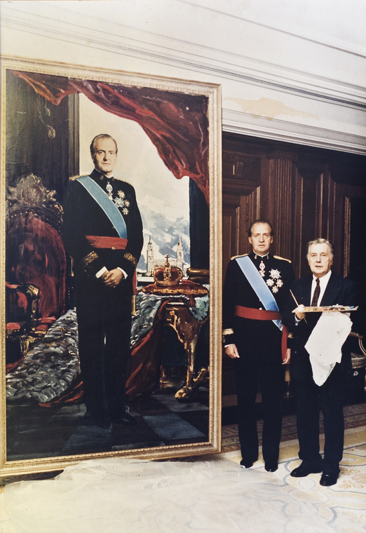Король Испании Хуан Карлос I и Илья Глазунов у портрета короля. Мадрид. Королевский дворец Сарсуэла