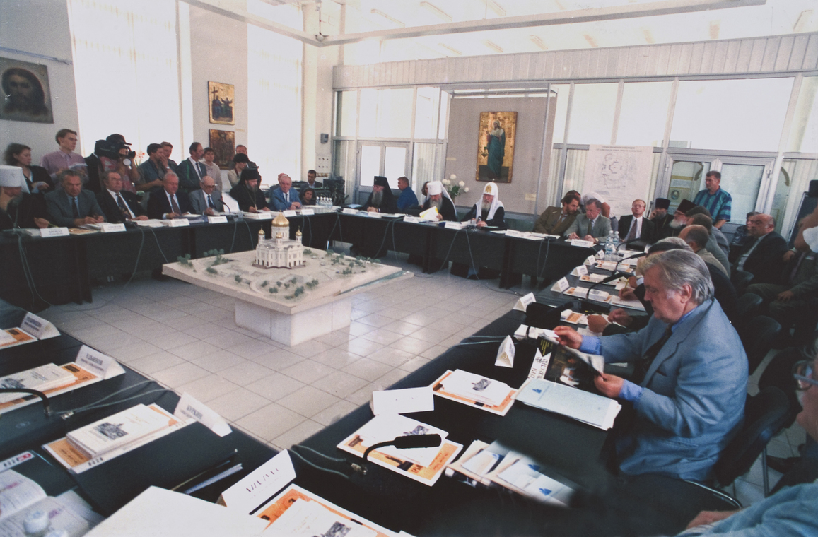 Илья Глазунов на заседании комиссии по восстановлению Храма Христа Спасителя. Москва