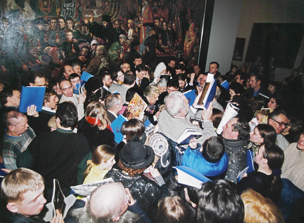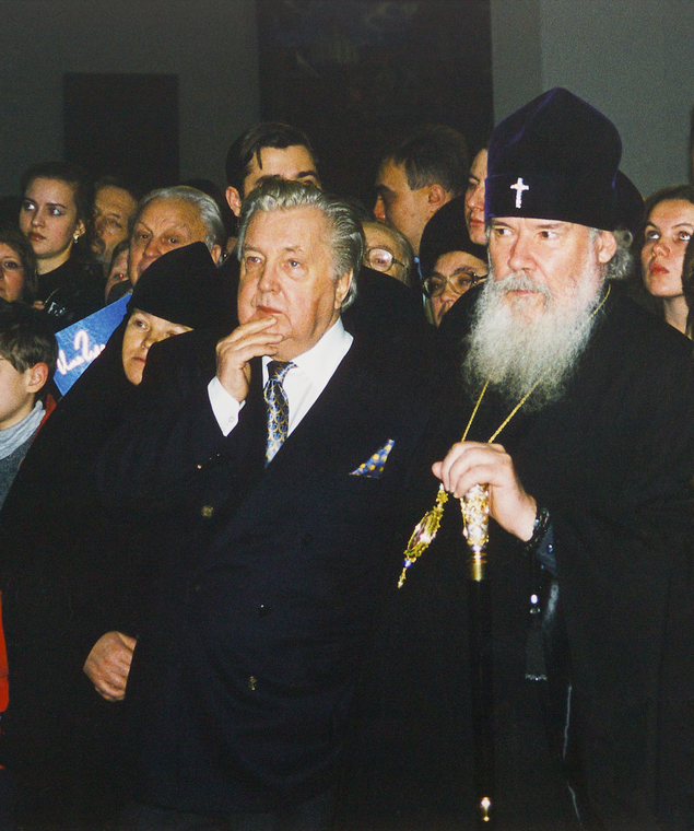 Илья Глазунов и Святейший Патриарх Московский и всея Руси Алексий II на выставке художника в московском Манеже