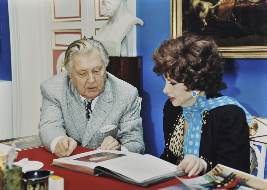 Илья Глазунов и итальянская актриса Джина Лоллобриджида в Роосийской Академии живописи, ваяния и зодчества Ильи Глазунова. Москва