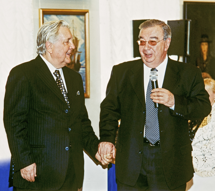 Президент Торгово-промышленной палаты РФ Е.М. Примаков и И.С. Глазунов в картинной галерее художника. Москва