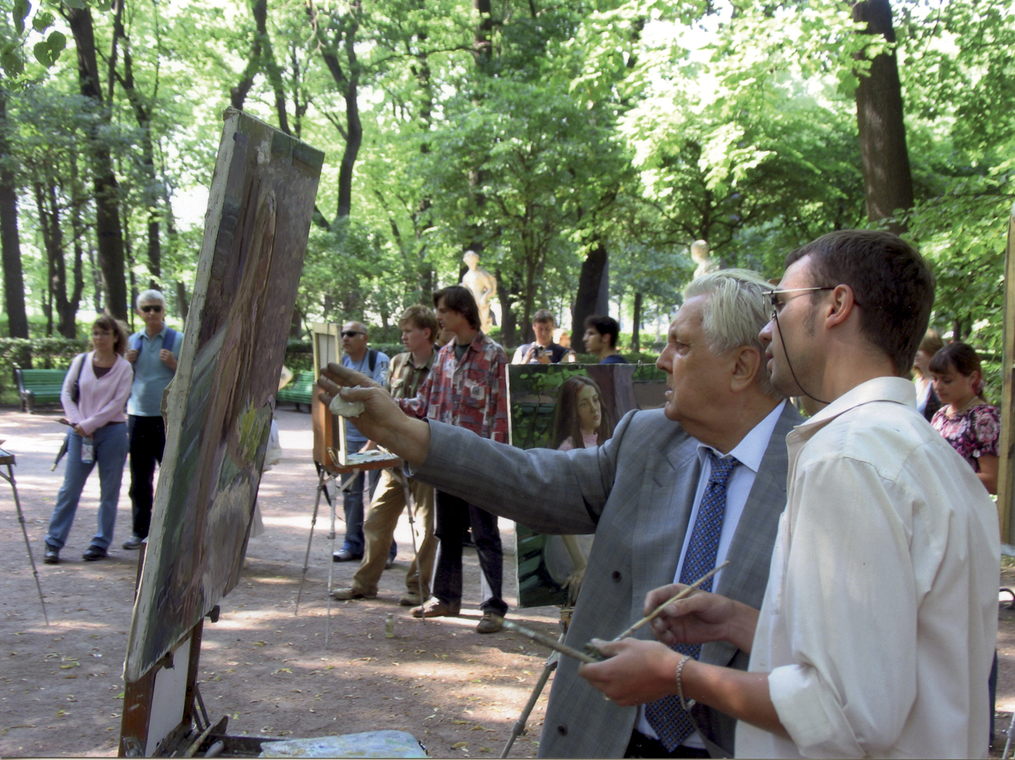 Илья Глазунов со студентами в Летнем саду. Санкт-Петербург