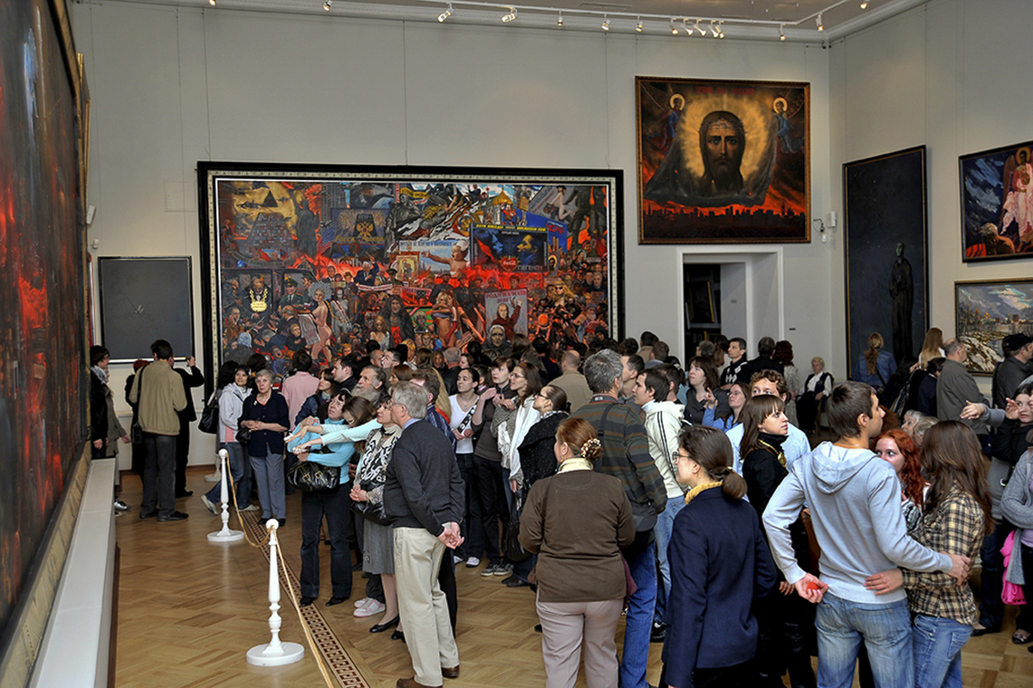 Зрители в Галерее Ильи Глазунова. Москва, ул.Волхонка,13