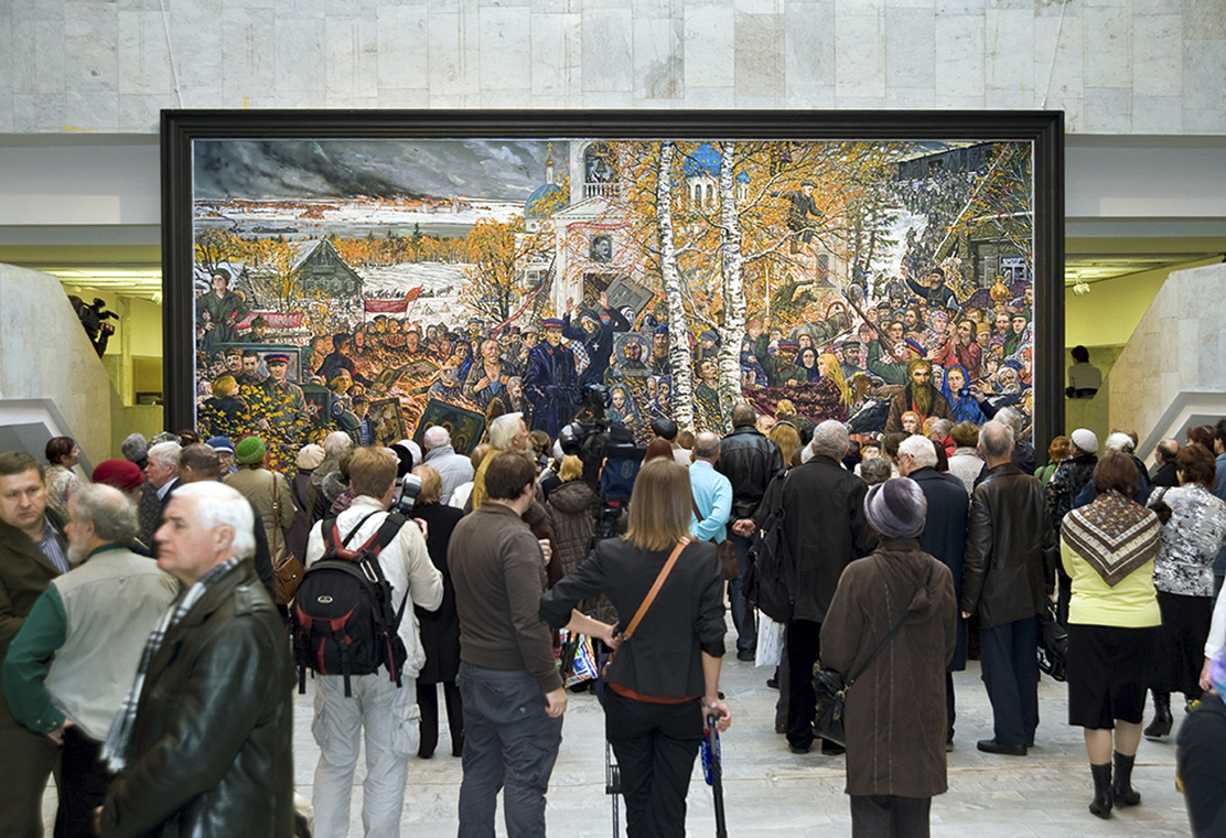 Зрители у картины "Раскулачивание" в ЦВЗ Манеж. Санкт-Петербург