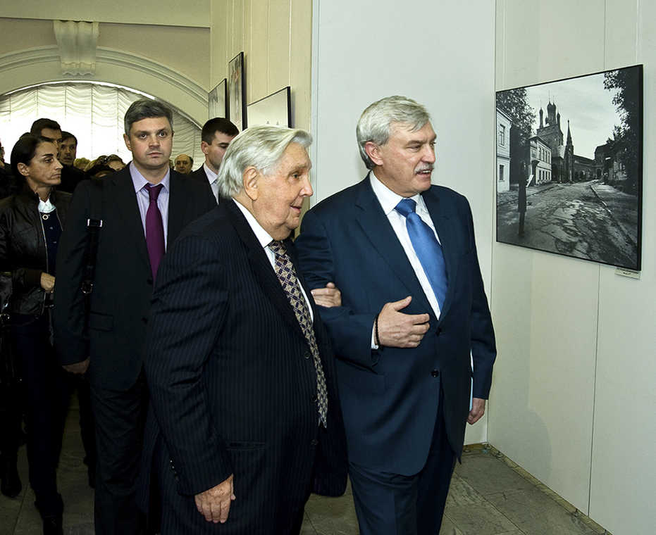 И.С. Глазунов и Г.С. Полтавченко на открытии выставки в ЦВЗ Манеж. Санкт-Петербург