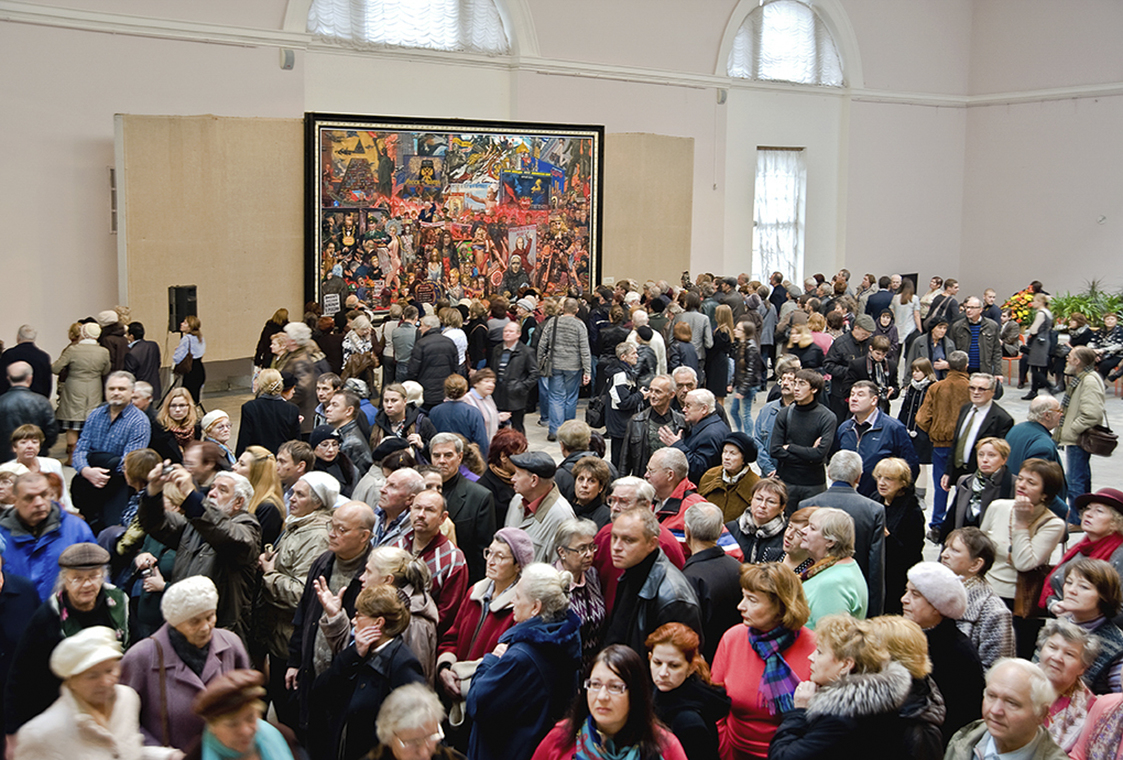 Зрители на выставке Ильи Глазунова в ЦВЗ Манеж. Санкт-Петербург