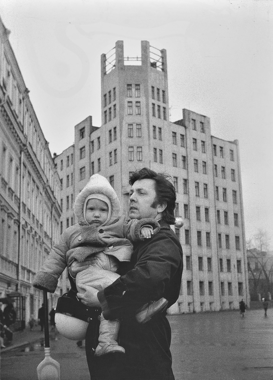 Илья Глазунов во дворе дома с детьми. Москва
