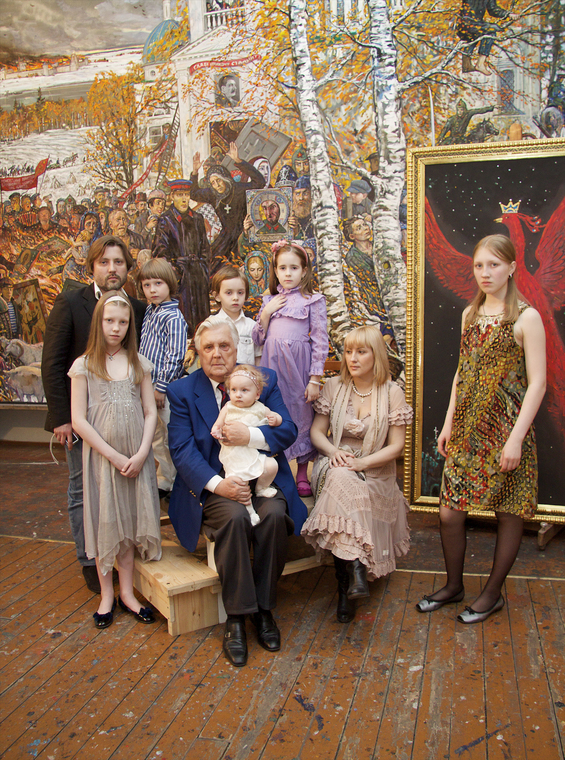 Илья Глазунов с детьми и внуками в мастерской. Москва