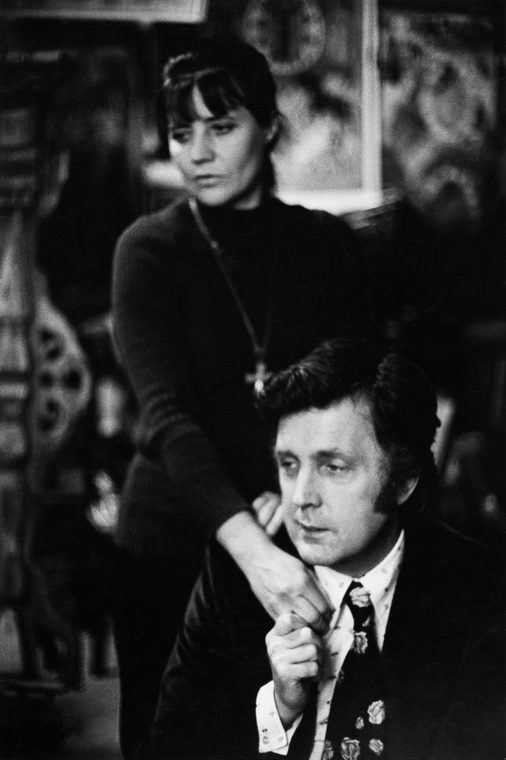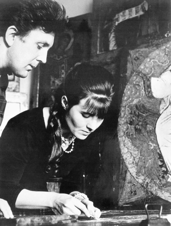 Илья Глазунов с женой Ниной Виноградова-Бенуа в мастерской за реставрацией иконы