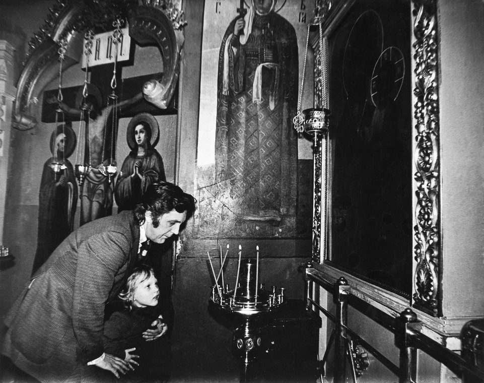 Илья Глазунов с сыном Ваней в Троице-Сергиевой Лавре. Загорск