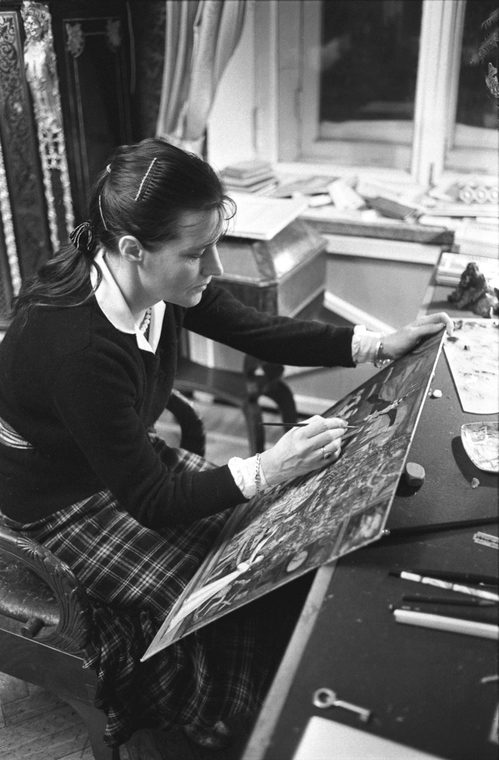Жена Ильи Глазунова Нина Виноградова-Бенуа в мастерской. Москва