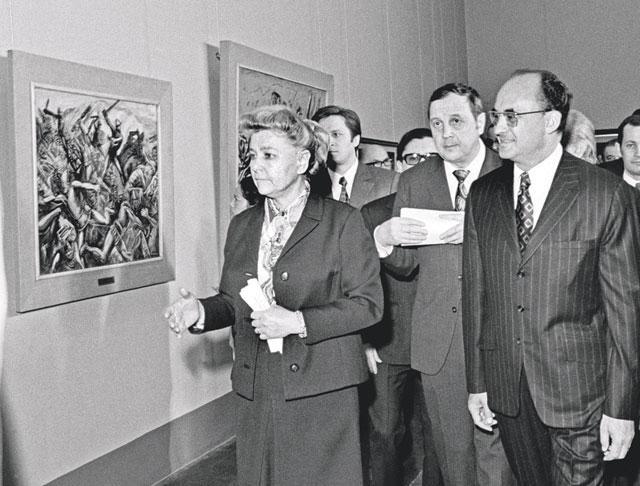 — Тет-а-тет мы общались лишь дважды. В первый раз после моего возвращения из триумфальной поездки по Италии, куда в апреле 1963 года меня пригласили Феллини, де Сантис, Висконти, Лоллобриджида. Екатерина Алексеевна захотела ближе познакомиться с художником, заслужившим лестные отзывы на Западе. Видимо, желая смутить, сказала при встрече: «Итальянская пресса назвала вас Достоевским в живописи. Ну, посмотрим, посмотрим…» Правда, потом продолжила: «И чем же вам помочь?» Если бы начал перечислять все, в чем нуждался, список вышел бы длинный, но я ограничился тем, что попросил выделить какой-нибудь чердак под студию и дать возможность провести выставку в Москве. Я ведь долго существовал в столице на птичьих правах, был, по существу, натуральным бомжем. Меня никуда не брали, все отвернулись. За дипломную работу в Институте живописи в родном Ленинграде я схлопотал тройку, хотя годом ранее на международном конкурсе молодых художников в Праге получил гран-при за портрет Юлиуса Фучика. Но суровым экзаменаторам очень уж не понравилась моя картина «Дороги войны». Один из преподавателей, брызжа слюной, кричал: «Глазунов, что себе позволяешь?! Вместо того чтобы прославлять великий подвиг советского народа-победителя, рисуешь отступление Красной Армии, скорбные лица беженцев. Мы драпаем от немцев, и это, по-твоему, дороги войны, да? Такое мог состряпать лишь духовный власовец! Тебя, сука, надо гнать поганой метлой из института, а мазню твою спалить к чертовой матери!» И ведь картину действительно сожгли! Правда, не сразу, а какое-то время спустя. Я увез ее из Ленинграда в Москву, где «Дороги»… вскоре купили для Центрального музея Вооруженных Сил. Это сделали по настоянию генерала Востокова, начальника Главного политуправления, который помнил не только победный май 45-го, но и тяжесть поражений лета 41-го, кровопролитные бои под Сталинградом, Курском, Варшавой и Будапештом… Мне заплатили за картину три тысячи рублей, огромную по тем временам сумму. Но деньги для художника — это еще не все. Любой творец желает долгой жизни своему детищу. Увы, «Дороги войны» никогда не выставлялись в музее. Как скрутили в рулон, так и не развернули, холст долго валялся в сарае с какими-то дровами, а потом вовсе сгинул. По слухам, пошел в топку… А тогда, в институте, мне запретили представлять «Дороги» в качестве дипломной работы, вынудив защищаться с картиной, сделанной на первом курсе. «Рождение теленка» членам комиссии показалось более безобидным, хотя и в нем они узрели клевету на советское крестьянство. В итоге строгие экзаменаторы вынесли вердикт, что я пригоден лишь на то, чтобы быть учителем черчения в школе. Так — значит так! По распределению поехал сначала в Ижевск, потом в Иваново, но в городе ткачих не нашлось свободной ставки для выпускника института живописи, места чертежников оказались поголовно заняты. Мне выдали справку и отпустили на все четыре стороны. Несколько ночей мы с Ниночкой, моей обожаемой женой, мыкались на Ленинградском вокзале столицы, прячась от милиционеров. Чтобы прокормиться, я устроился грузчиком. Нас, по сути, спас человек по имени Артур. Мы познакомились на моей первой персональной выставке, которую в феврале 1957-го открыли в ЦДРИ на волне успеха на конкурсе в Праге.